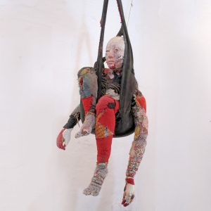 The images in this installation were created in mixed techniques, designed skillfully from a variety of re-used materials like old clothes and rags, sawn on wire nets and filling materials or on pieces of old, broken furniture, which, in the recycling process, move from the practical into the artistic. The exposure of the inner structure of the marionettes invalidate the human illusion, creating the surreal atmosphere that emerges in the gap between reality and illusion.