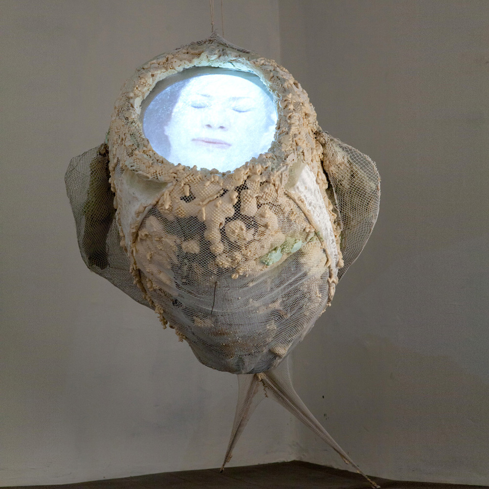 In the installation-exhibit, Grossinger dismantles any possibility of coherent understanding of the image and the world, and yet cannot stop trying. Thus, in a video an image of her head emerges above the water projected in an object like a floating fish – suggesting Jonah and the whale, and the act of prophecy/art that the artist cannot escape from. Before us is a dystopia of fears, memories and unrealized longings – a dream of creation, a dream of disintegration.
